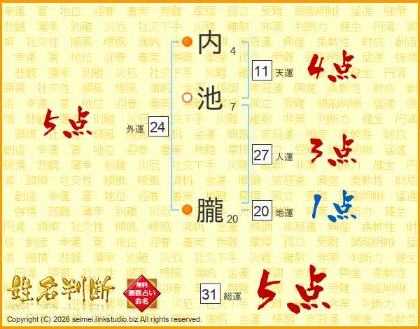 内池朧さんの総運は31画の5点!