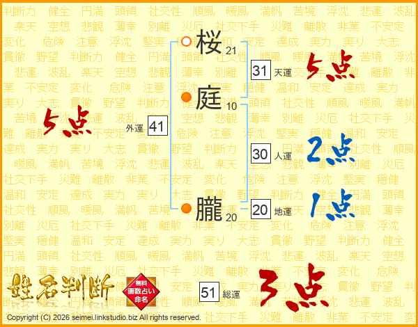 桜庭朧さんの総運は51画の3点!