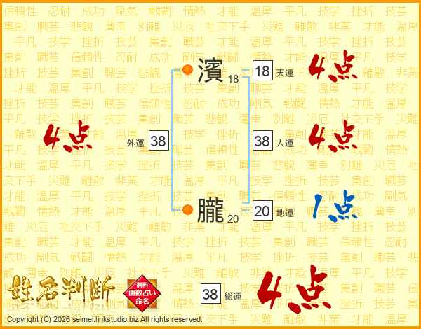 濱朧さんの総運は38画の4点!