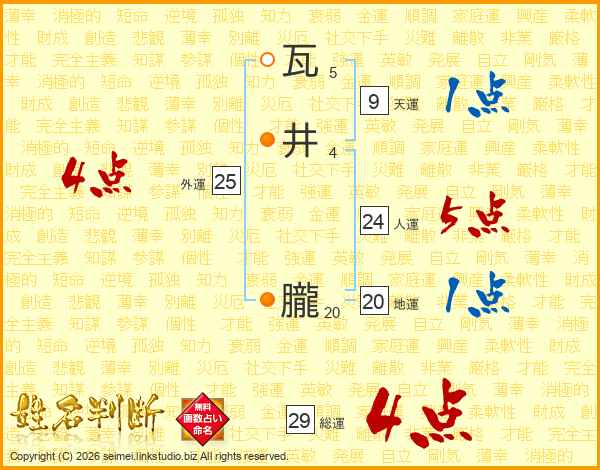瓦井朧さんの総運は29画の4点!
