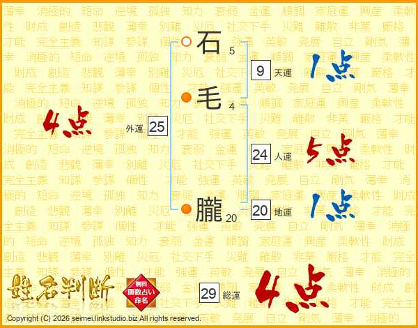 石毛朧さんの総運は29画の4点!