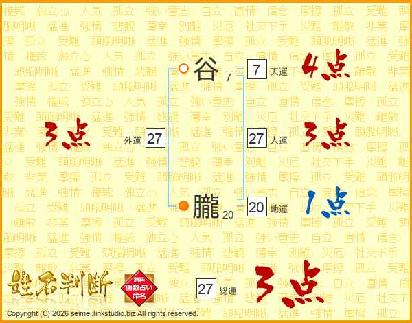 谷朧さんの総運は27画の3点!