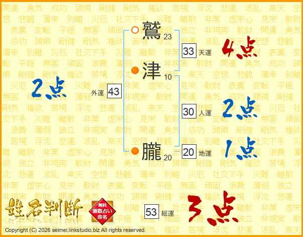 鷲津朧さんの総運は53画の3点!