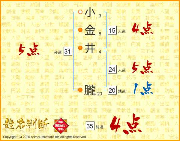 小金井朧さんの総運は35画の4点!