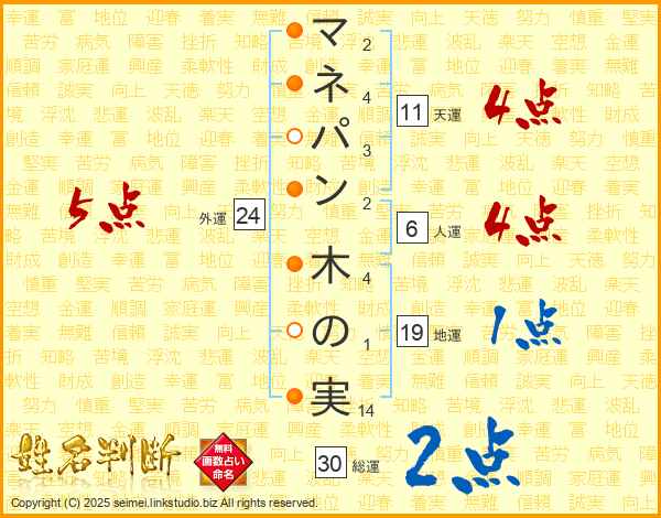 マネパン木の実さんの総運は30画の2点!