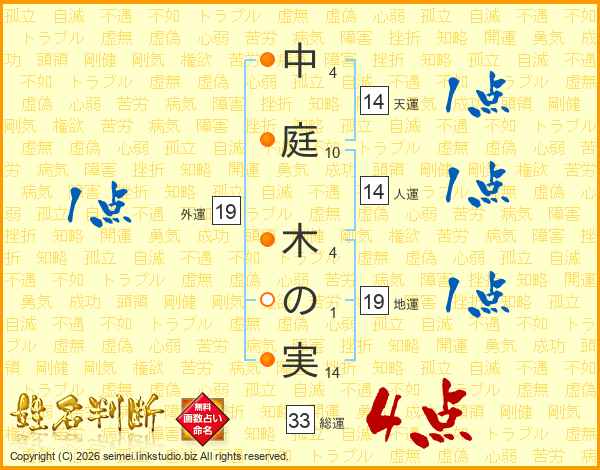 中庭木の実さんの総運は33画の4点!