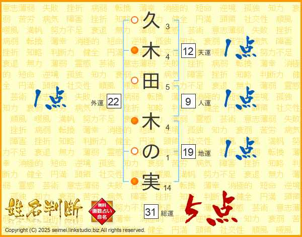 久(3画)木(4画)田(5画) 木(4画)の(1画)実(14画)