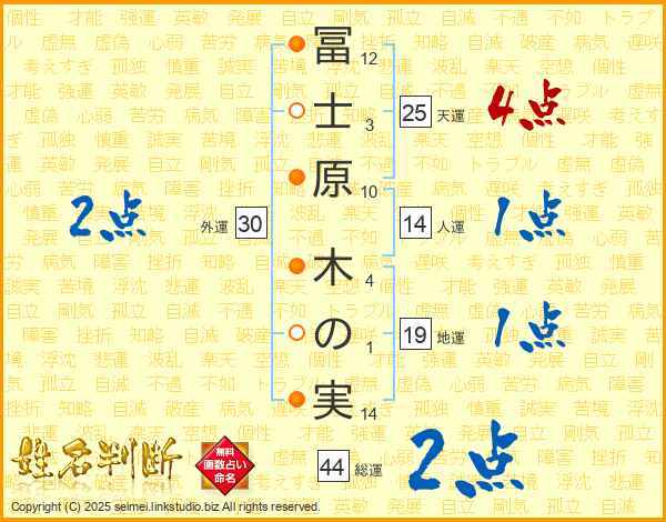 冨(12画)士(3画)原(10画) 木(4画)の(1画)実(14画)