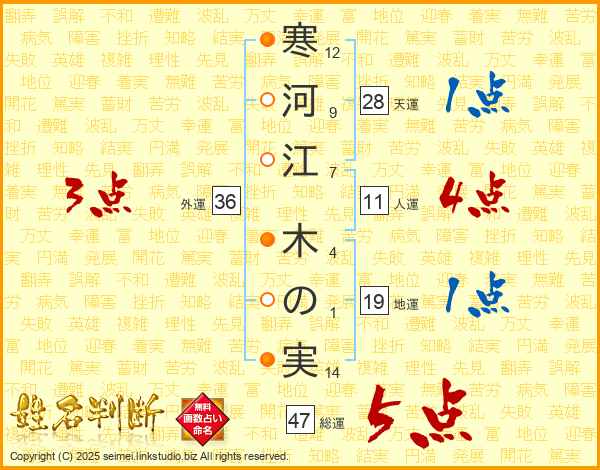 寒河江木の実さんの総運は47画の5点!