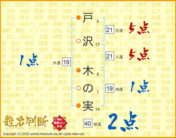 戸沢木の実さんの人運は21画の5点!