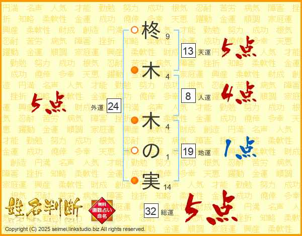 柊(9画)木(4画) 木(4画)の(1画)実(14画)