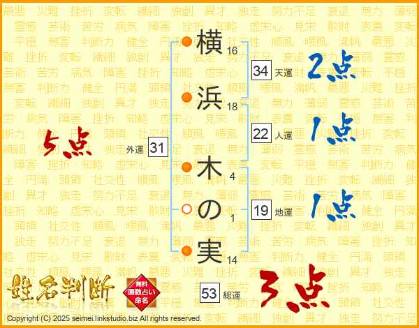 横(16画)浜(18画) 木(4画)の(1画)実(14画)