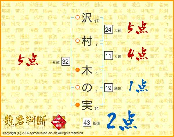沢村木の実さんの総運は43画の2点!