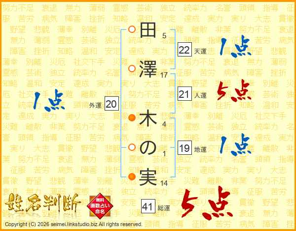 田澤木の実さんの総運は41画の5点!
