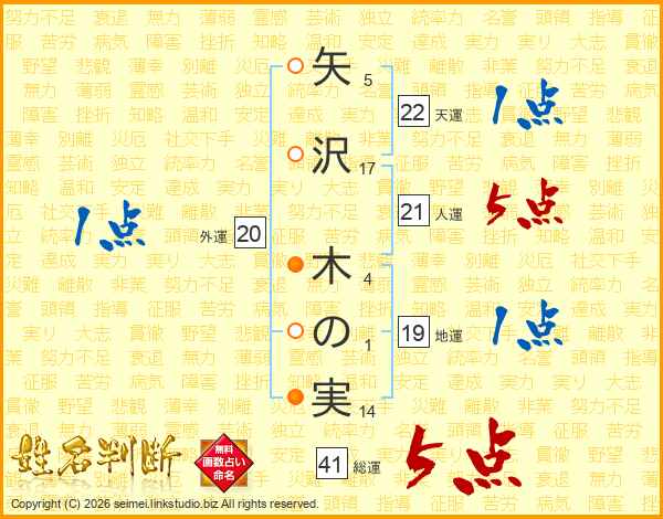 矢沢木の実さんの総運は41画の5点!