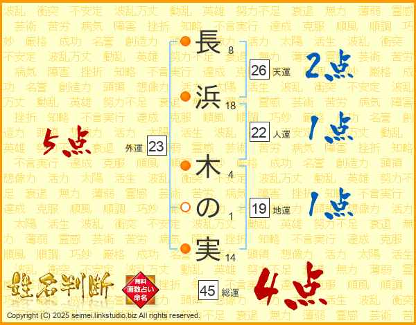 長浜木の実さんの総運は45画の4点!