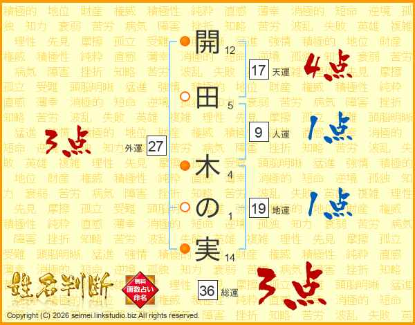 開田木の実さんの天運は17画の4点!