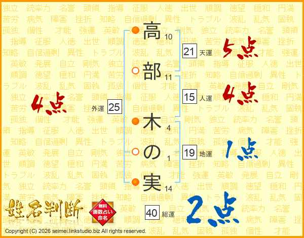 高部木の実さんの総運は40画の2点!