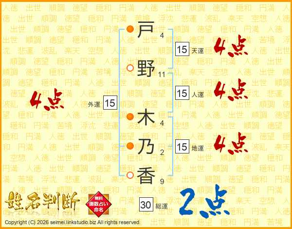 戸野木乃香さんの天運は15画の4点!