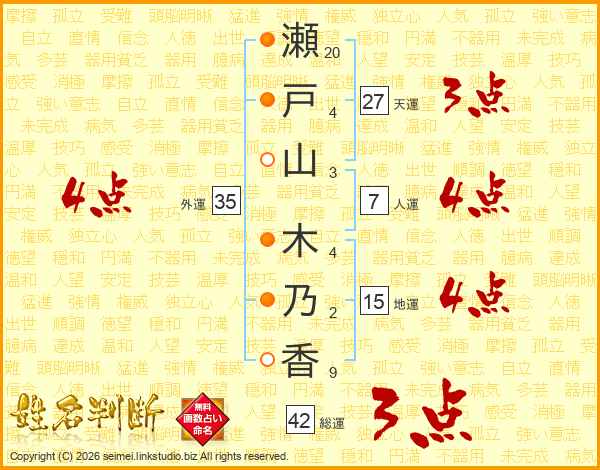 瀬戸山木乃香さんの外運は35画の4点!