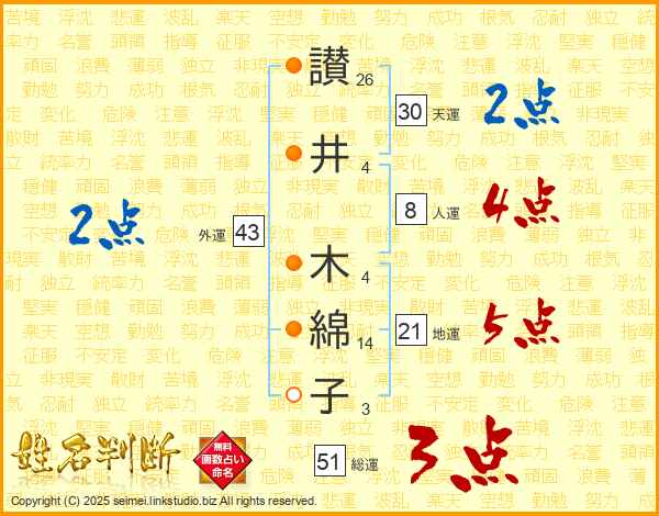 讃井木綿子さんの天運は30画の2点!
