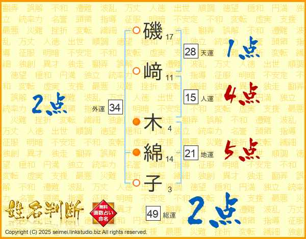 磯(17画)﨑(11画) 木(4画)綿(14画)子(3画)