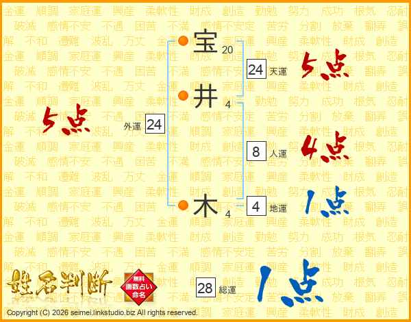 宝井木さんの総運は28画の1点!