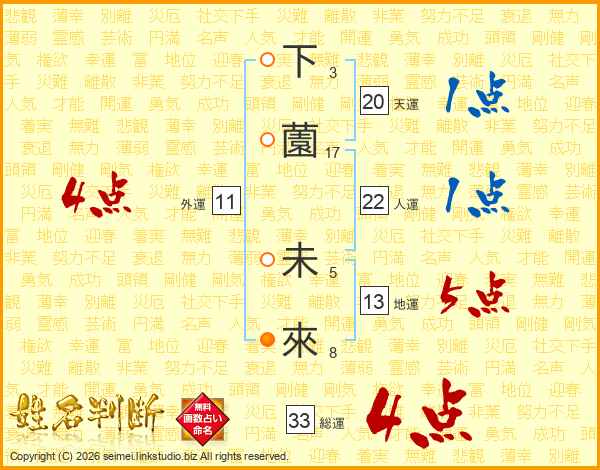 下薗未來さんの総運は33画の4点!