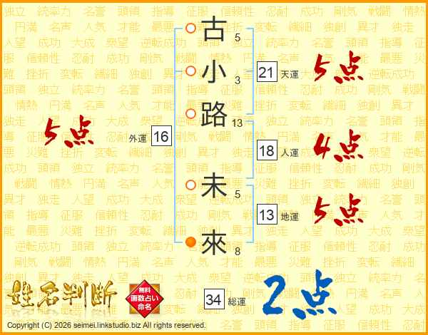 古小路未來さんの天運は21画の5点!