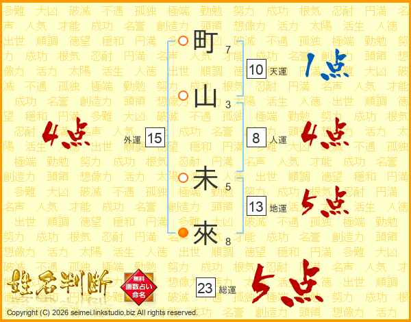 町(7画)山(3画) 未(5画)來(8画)