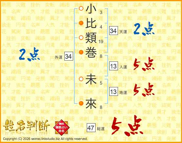 小比類巻未來さんの総運は47画の5点!