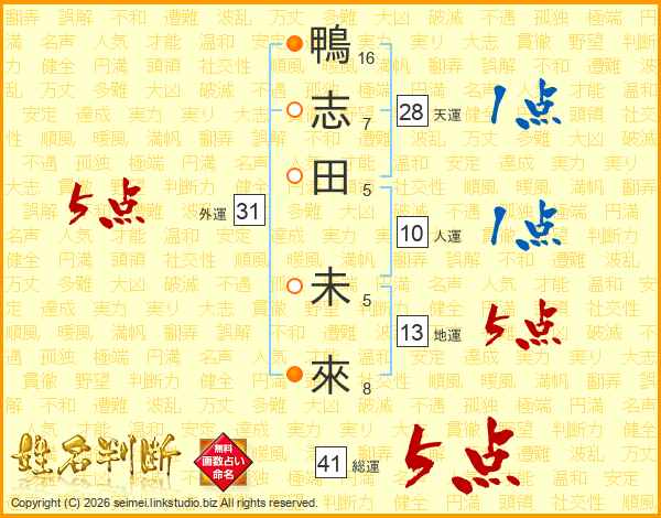 鴨志田未來さんの総運は41画の5点!