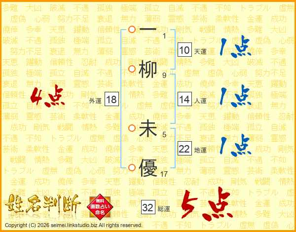 一柳未優さんの総運は32画の5点!