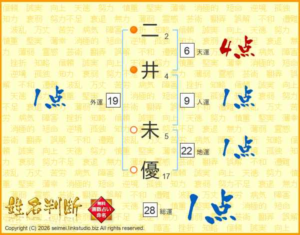 二井未優さんの総運は28画の1点!