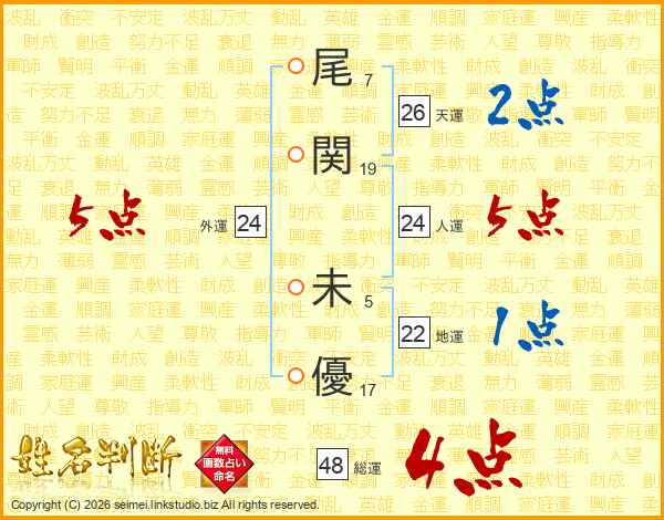 尾関未優さんの天運は26画の2点!