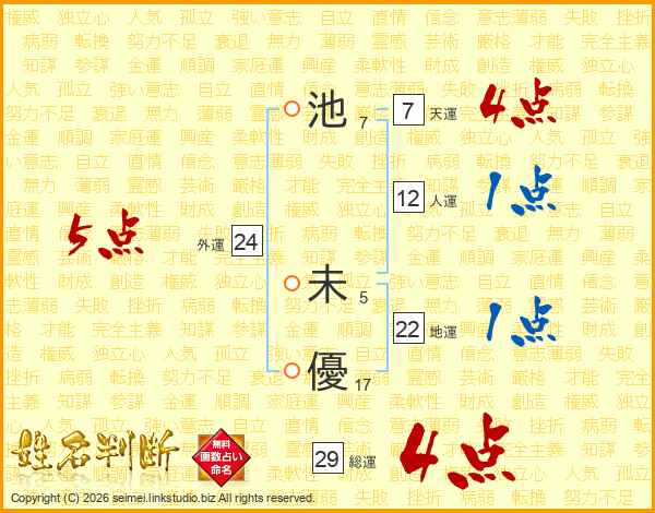 池未優さんの天運は7画の4点!