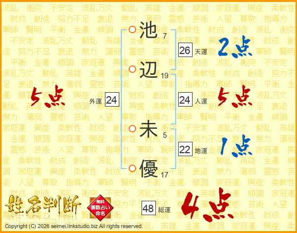 池辺未優さんの人運は24画の5点!