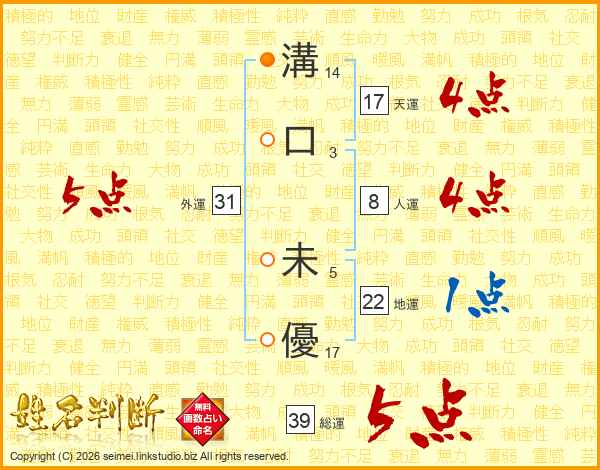 溝口未優さんの総運は39画の5点!