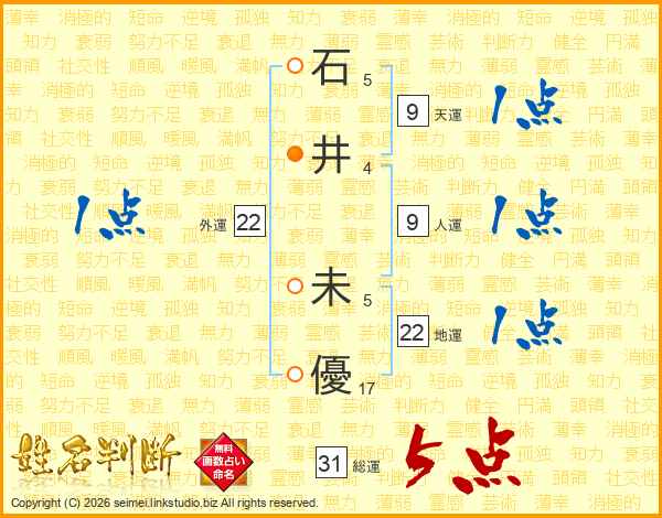 石井未優さんの総運は31画の5点!