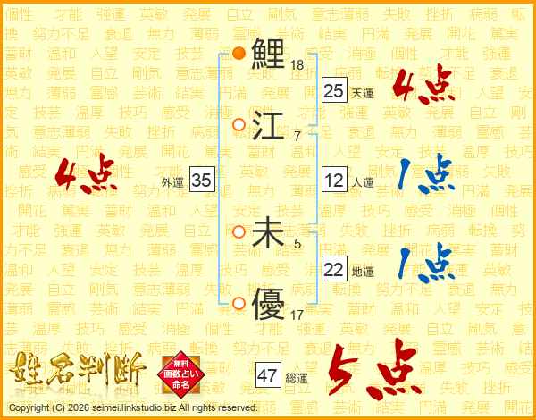 鯉江未優さんの天運は25画の4点!