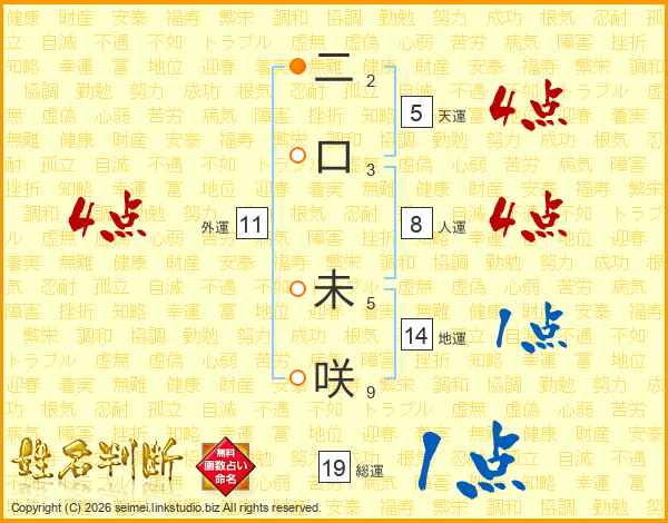 二口未咲さんの総運は19画の1点!