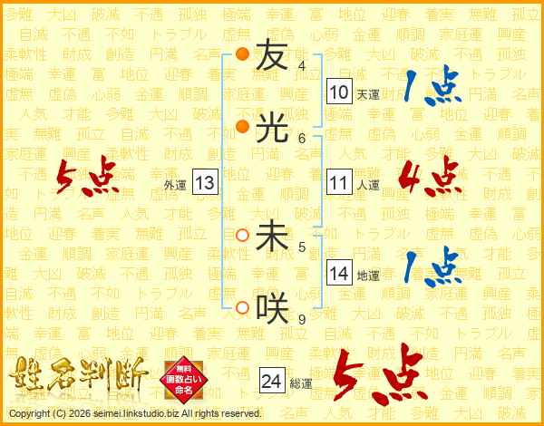 友光未咲さんの外運は13画の5点!