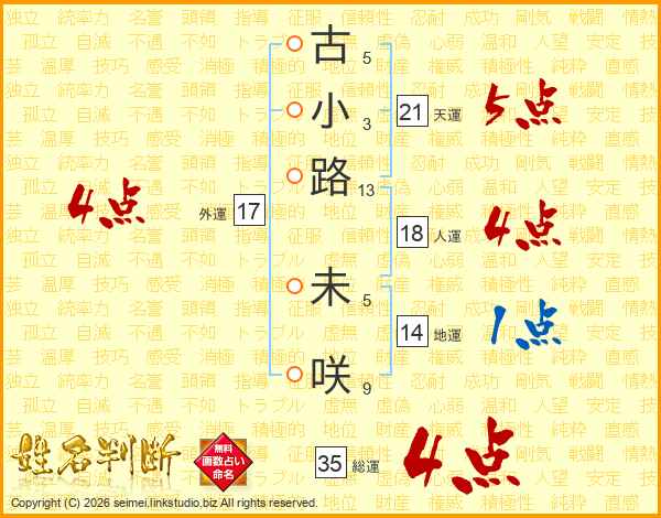 古小路未咲さんの総運は35画の4点!