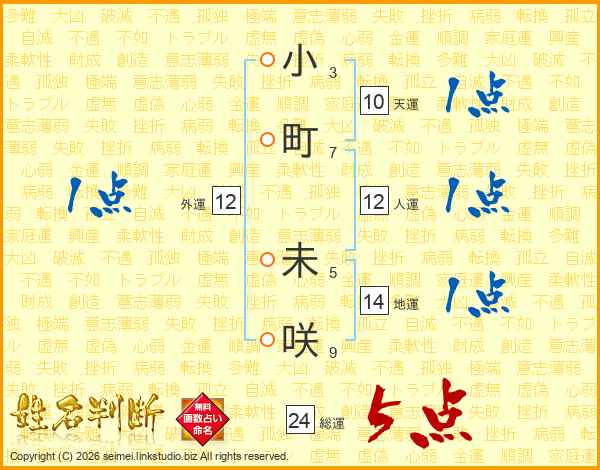 小町未咲さんの総運は24画の5点!