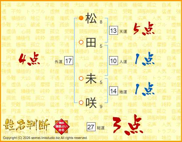 松田未咲さんの天運は13画の5点!