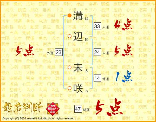 溝辺未咲さんの総運は47画の5点!