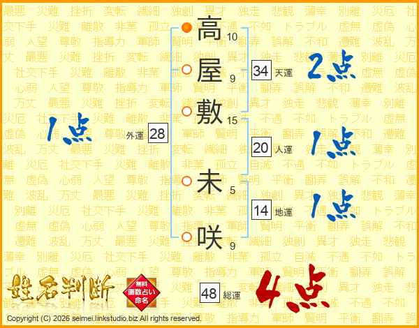 高屋敷未咲さんの総運は48画の4点!