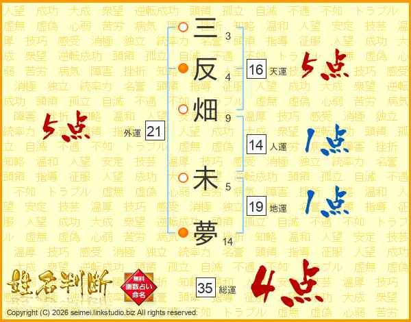 三反畑未夢さんの総運は35画の4点!