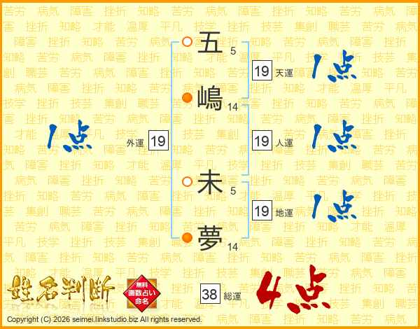 五嶋未夢さんの総運は38画の4点!