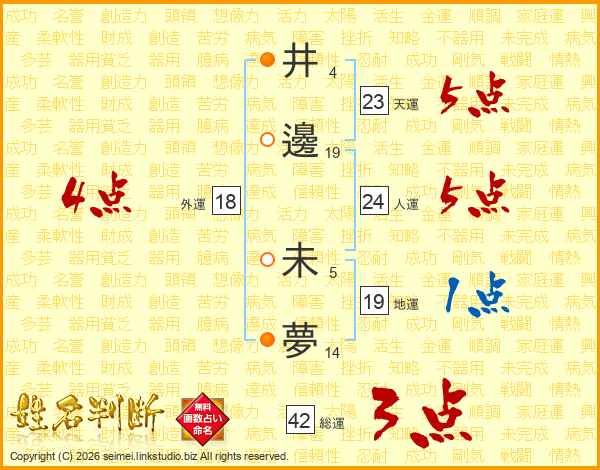 井(4画)邊(19画) 未(5画)夢(14画)